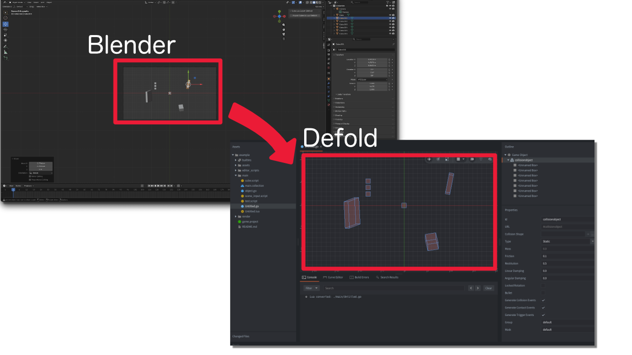 I’ve created a simple workflow to bridge the gap between Blender and Defold for level blockouts. It consists of a Blender add-on and a Defold Editor Script.