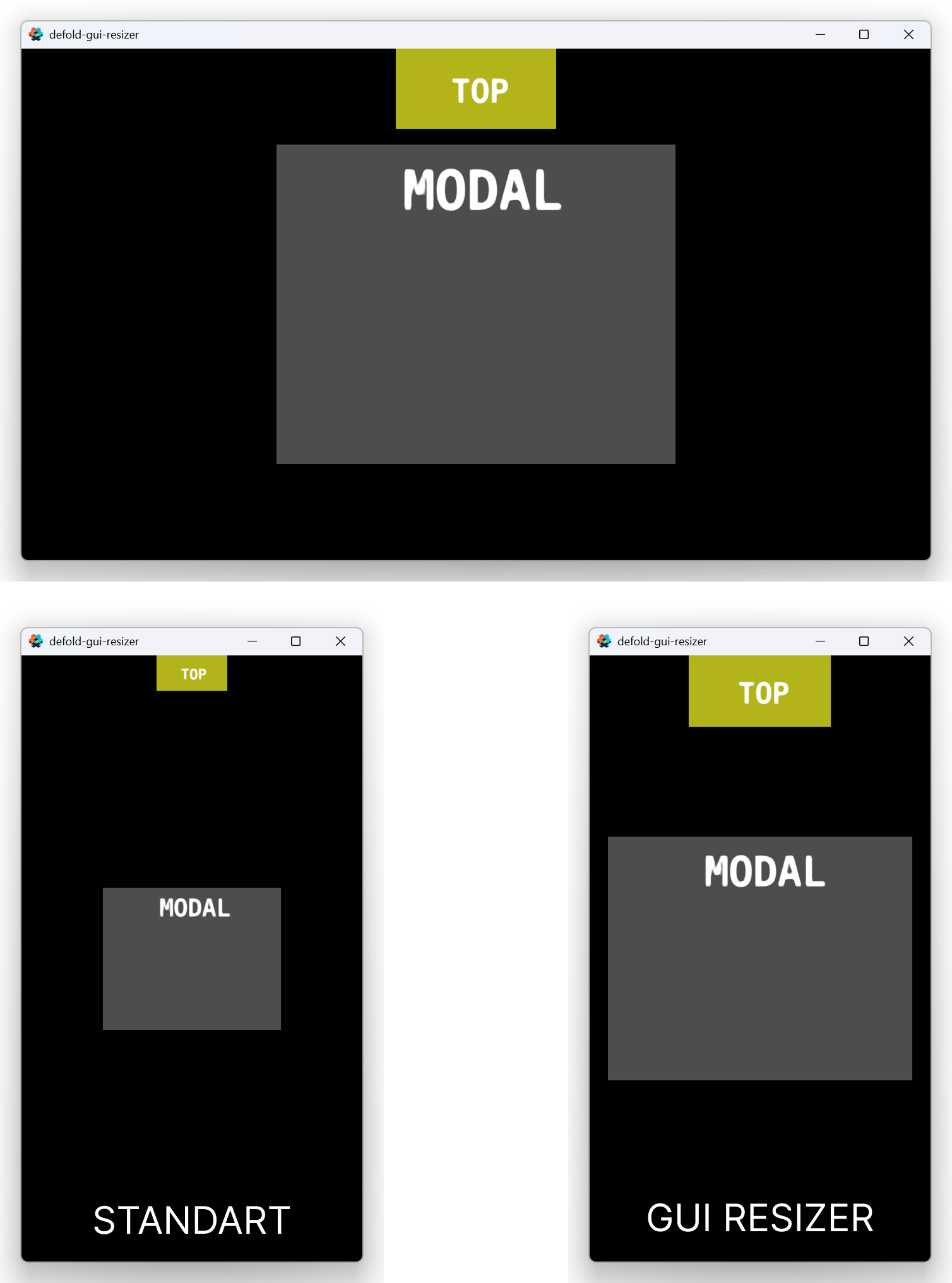 Minimal Defold extension + Lua module to resize the game view and show a menu