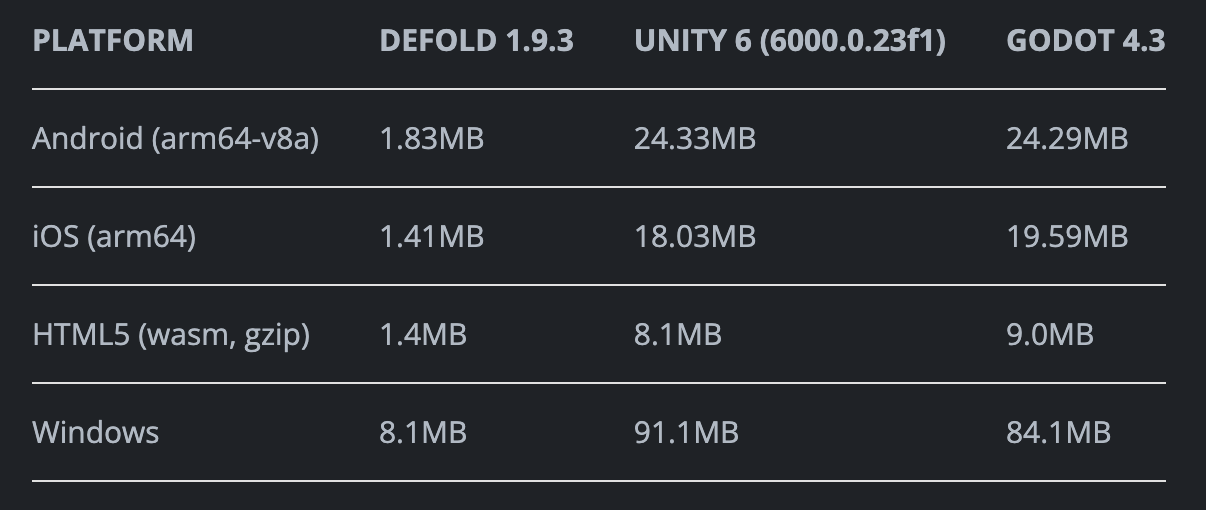 That’s really impressive. With Unity, a simple android bundle is a complex task. Really glad Defold is user friendly on this side ![]()