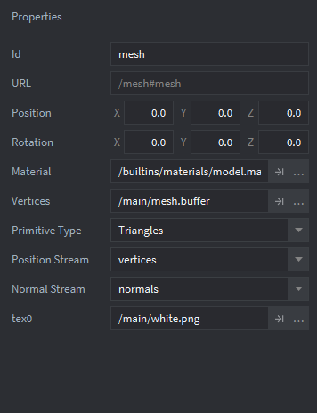 the mesh component appears to have slots for position stream and normal stream, but no uv stream