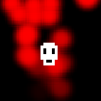But if we simply enable the depth mask, all of the “transparent” parts of the sprite’s quads show up as a black square around the sprite. Eg. here’s what happens if I disable the depth mask to after sprites, and before particles;