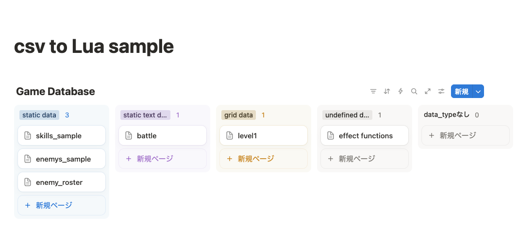 In this sample project, I used Notion as a database management tool. I found that Notion offers a couple of significant advantages over traditional spreadsheets like Excel for managing game data: